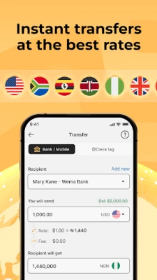 Shin kana neman mafita ta kuɗi da ke sauƙaƙa rayuwar ka? Cleva ita ce amsar ku! An tsara Cleva don samar da ingantacciyar hanya, mai sauri, da amintacciya don gudanar da kuɗin ku. Fara tafiyar ku ta kuɗi cikin hanzari, ba tare da jinkiri ko rikitarwa ba, kuma ku more cikakken tsaro. Tare da Cleva, za ka iya tura kuɗi zuwa dangi da abokai nan take a faɗin Najeriya, Ghana, Uganda, da sauran ƙasashe na Afirka. Kawai zaɓi asusun banki ko na wayar hannu, tabbatar da cikakkun bayanai, kuma kuɗin ku zai isa inda ake so cikin gaggawa.