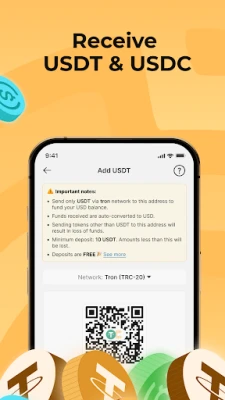 Bayan haka, Cleva tana ba da damar karɓar biyan kuɗi na USD ba tare da matsala ba. Ko kai mai zaman kansa ne, ma'aikacin intanet, mai ƙirƙirar abun ciki, ko ɗan kasuwa, za ka iya karɓar biyan kuɗi na ACH da Wires daga ma'aikatan ka ko abokan cinikin ka cikin sauƙi. Haka kuma, za ka iya karɓar stablecoins kamar USDT ko USDC cikin walat ɗin Cleva ɗin ka a cikin mintuna kaɗan, yana ba ka ƙarin zaɓuɓɓuka don bunƙasa kuɗin ka. Tare da Cleva, maido da kuɗi tsakanin abokai masu amfani da Cleva kyauta ne kuma nan take. Kuma kada ka damu da canjin kuɗi; Cleva tana ba da mafi kyawun farashi mai gasa ba tare da wani caji ba. Bugu da ƙari, katin USD na kama-da-wane na Cleva yana baka damar biyan kuɗin rajista na duniya, sayayya ta intanet, ko kuma yin biyan kuɗi na duniya cikin sauƙi.