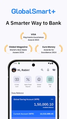 Buɗe asusun banki yanzu yana hannun kowa. Kowane abokin ciniki na iya buɗe asusu nan take a cikin ƴan matakai masu sauƙi daga ko'ina a kowane lokaci, yana guje wa ziyartar banki da kansa. Sanya kuɗin ajiya na tsawon lokaci (Fixed Deposit) yanzu ya zama mai sauƙi tare da "Global Smart Plus"; nan take zaku iya neman sanya kuɗi ba tare da la'akari da inda kuke ba. Bayan haka, "Global Smart Plus" tana bayar da cikakken kunshi na biyan duk wasu lissafin ku na yau da kullum – daga masu samar da intanet (ISPs), talabijin, jiragen sama, inshora, wutar lantarki, ruwa, zuwa layin waya – duk a ainihin lokacin.