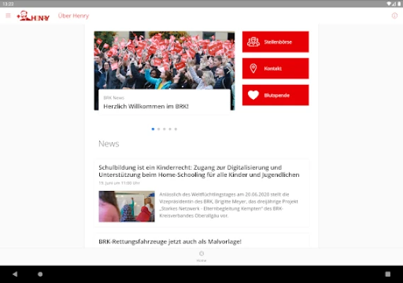 Za ku so ku zurfafa fahimtar ayyukan Bayerisches Rotes Kreuz? Ko kuwa kun riga kun zama wani ɓangare na ƙaƙƙarfan iyalinmu na BRK, kuna neman hanyar sadarwa mai inganci? A nan ne Henry ya shigo, aikace-aikacen da Bayerisches Rotes Kreuz ya ƙirƙiro musamman don haɗa kowane mai sha'awa ko ma'aikaci da duniyar BRK mai cike da rayuwa. Henry babban dandamali ne ga duk wanda yake da burin bayar da gudunmawa ga aikin jin kai na BRK ko kuma wanda tuni yake aiki tuƙuru a cikinta.