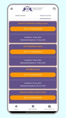 Tare da Henry Harvin Education LMS app, halartar darussa kai tsaye ya zama mai sauƙi kamar danna maɓalli guda. Kuma idan har ka rasa wani darasi, kada ka damu ko ka rasa komai; akwai damar samun duk rikodi na darussan da suka gabata don karatu a lokacin da ya dace da kai. Bugu da ƙari, duba kayan darussa masu tarin yawa kuma ku inganta fahimtar ku da gwaje-gwaje masu ma'amala waɗanda ke taimakawa wajen gwada iliminku da bibiyar ci gaban ku.