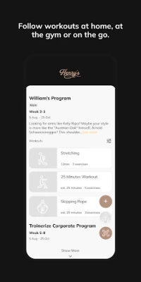 Domin tabbatar da cewa kuna samun jagora mai inganci, wannan manhaja tana bayar da bidiyoyin motsa jiki da za ku iya bi don koyan dabarun da suka dace. Idan kuna buƙatar ƙarin taimako, akwai damar tuntuɓar mai horar da ku kai tsaye don samun shawara ko amsa tambayoyi. Ba wai kawai za ku iya bibiyar nasarorin ku da samun lambobin yabo don ƙoƙarinku ba, har ma za ku iya haɗuwa da jama'ar yanar gizo. Wannan zai ba ku damar haɗuwa da mutane masu irin burin ku na lafiya, inda za ku iya musayar ra'ayoyi, samun kwarin gwiwa, da ci gaba da jajircewa tare.