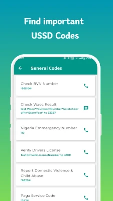 Amfanin 9jaCodes and 9ja BankCodes bai tsaya ga kamfanonin sadarwa ba. Manhajar tana ba ka damar shiga lambobin USSD na bankuna sama da 20 na Najeriya, daga Access Bank zuwa Zenith Bank, da sauran su da yawa. Yanzu zaka iya tura kuɗi tsakanin asusu, buɗe sabon asusu, da kuma samun lambobin Swift na banki cikin sauƙi. Kuma ga duk wani buƙatu na gaba ɗaya, akwai lambobin BVN, lambobin duban sakamakon WAEC, lambobin gaggawa na Najeriya, lambobin biyan kuɗi na DStv da Smile, da kuma lambobin canja wurin kuɗi na GTB. Wannan manhaja ce mai cikakken bayani don sarrafa duk harkokinka na yau da kullun.