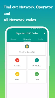 9jaCodes and 9ja BankCodes ya cika da lambobin USSD masu amfani ga manyan kamfanonin sadarwa na Najeriya: MTN, Airtel, 9mobile, da Glo. Daga sayen data mai sauƙi zuwa duba sauran data da kiredit, za ka iya gudanar da komai da latsa maɓalli ɗaya. Kuma ba wai kawai ba – manhajar tana ba ka damar rance kiredit ko data a lokutan buƙata, kiran ma'aikatan kula da abokan ciniki cikin sauƙi, da ma duba lambar wayarka. Bugu da ƙari, za ka samu lambobin biyan kuɗin data na yau da kullun, mako-wako, wata-wata, na dare ko na karshen mako, da kuma damar canza tsarin tarif naka ko tura kiredit (kamar Share N Sell da Me2U). Har ma an haɗa lambobin WAEC don dubawa.