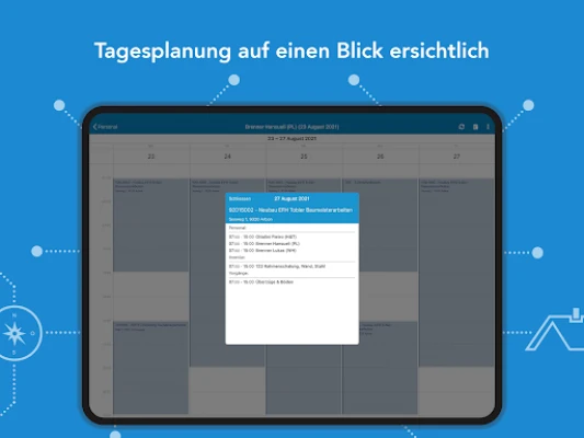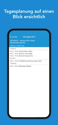Shin kuna buƙatar ƙarin kayan aiki ko motoci don wani wuri na gini? Da Ressourcenplanung App, za ku iya zaɓar albarkatun da kuke buƙata kai tsaye daga jerin kuma ku ajiyar su don aikin da ya dace. Nan take za ku ga abin da aka riga aka yi rajista da kuma abin da ke akwai. Bugu da ƙari, tana ba da cikakken hangen nesa game da rashi, wanda ke sauƙaƙa tsara aiki da tabbatar da sanin lokacin da kowane ma'aikaci yake da shi. Ma'aikata suna samun ayyukansu kai tsaye a kan wayoyinsu ko kwamfutar hannu, suna san inda za su je, abin da za su ɗauka, da kuma tare da wa za su yi aiki, yana kawar da rashin fahimta.